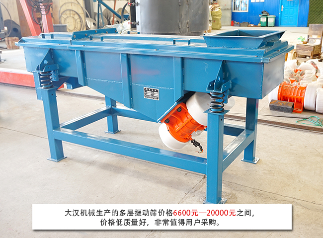 隨著生產(chǎn)節(jié)奏的加快,單層直線振動篩已經(jīng)完全無法滿足生產(chǎn)需求,多層直線振動篩就是由直線振動篩改造升級的一款高效篩分設(shè)備。多層直線振動篩可以將物料分級為多種規(guī)格,實(shí)現(xiàn)一次投料出多種規(guī)格物料,可以有效節(jié)省時間成本。由于不同廠家生產(chǎn)的多層直線振動篩型號、生產(chǎn)工藝等不同,所以就導(dǎo)致市場上多層直線振動篩價格不一,那么一臺多層直線振動篩一般都多少錢呢?大漢小編將為您解答: