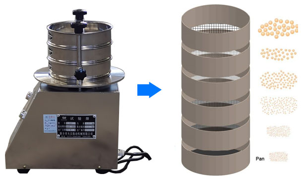 3、篩機(jī)可配8層試驗(yàn)篩(包括篩底),可同時(shí)從一種顆粒物料中分離出2-7個(gè)粒度段。