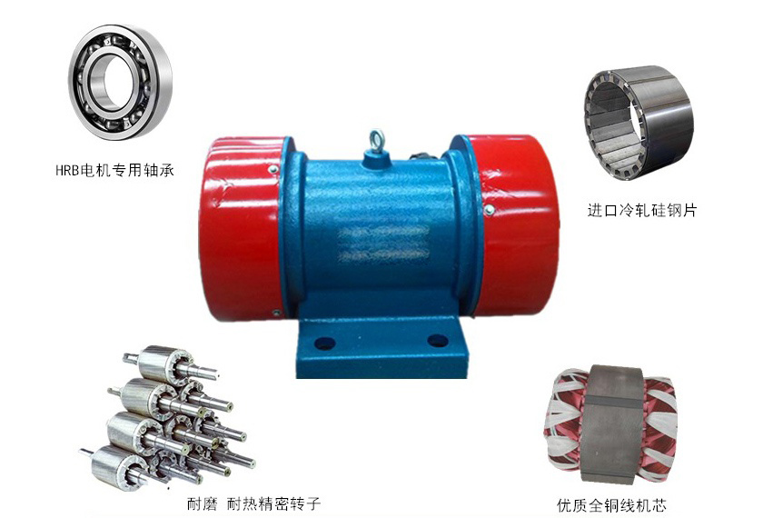2.振動器:振動器是連接在電機(jī)轉(zhuǎn)子上的部件,通過旋轉(zhuǎn)的方式產(chǎn)生離心力,將旋轉(zhuǎn)運(yùn)動轉(zhuǎn)換為直線振動,從而驅(qū)動振動設(shè)備進(jìn)行振動工作。