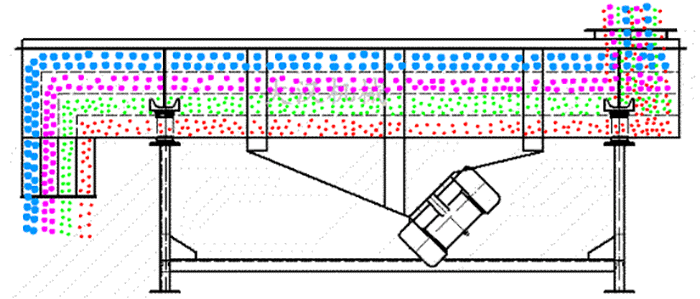 直線型振動篩兩電機(jī)軸相對篩面有一傾角,在激振力和物料自重力的合力作用下,物料在篩面上被拋起跳躍式向前作直線運(yùn)動,從而 達(dá)到對物料進(jìn)行篩選和分級的目的。可用于流水線中實(shí)現(xiàn)自動化作業(yè)。