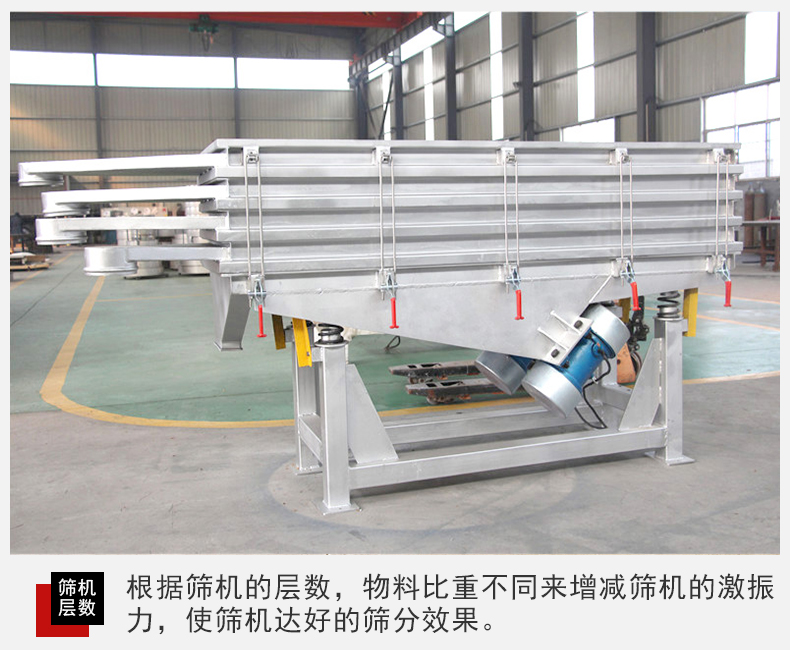 2,直線篩振動篩篩分面積廣,該設備從粉狀篩分到顆粒狀物料篩分都能完成同時還能夠篩分多種物料等級。