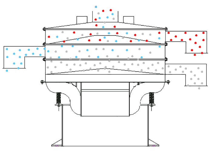 1、回旋式篩分:兩層同樣孔徑的篩網,讓篩過一次的物料再次篩分,以達到更高的篩分精度。